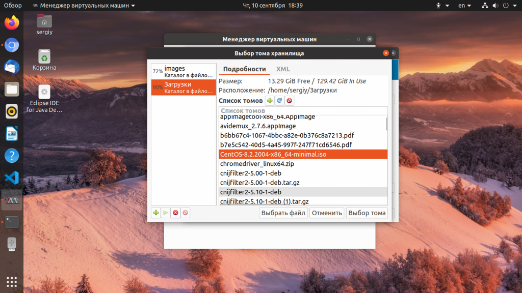 Он пуст. Создать виртуальную машину можно через терминал или в графическом интерфейсе. Для создания через терминал используйте команду virt-install. Сначала перейдем в папку libvirt: