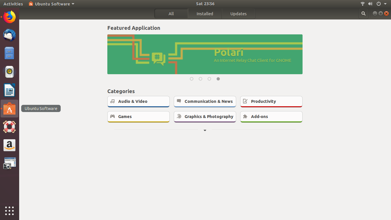 For a person who does not want to open the Command Line much, installing a software present in the Ubuntu repository through the UI is very simple. On your Ubuntu desktop Activities toolbar, click the Ubuntu Software icon.