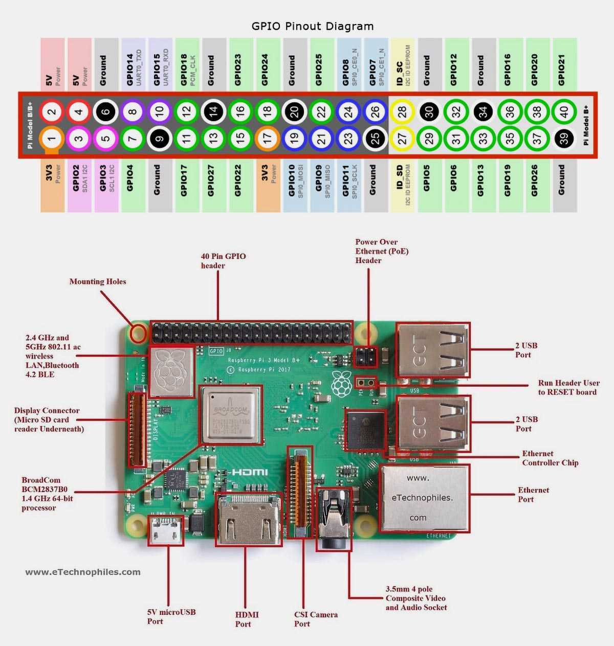 40 пиновый GPIO (интерфейс ввода/вывода общего назначения). Полностью совместим с предыдущими платами.