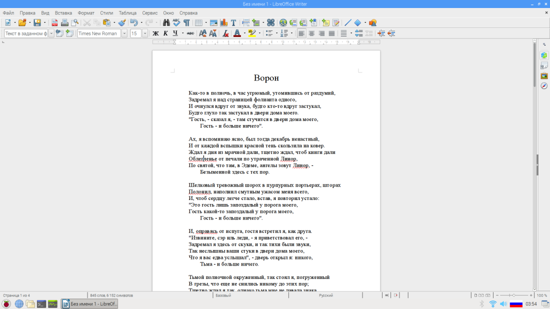 Пакет LibreOffice, конечно, неплох, но сейчас он на английском, не проверяет правописание и не очень правильно отображает документы MS Office, т. к. в системе нет ни одного шрифта из Windows. Открываем терминал, устанавливаем русскую локализацию, орфографический словарь и шрифты: