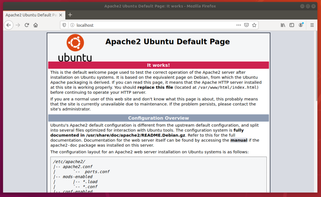 To test whether Apache is installed and functioning, open your web browser and browse to the server’s IP address or hostname.