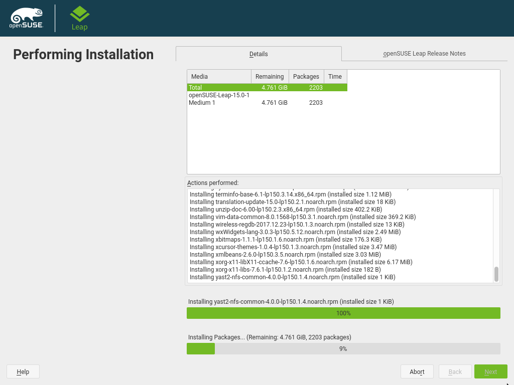 Пользовательский интерфейс GTK был удален, начиная с Leap 42.1, однако интерфейсы ncurses и Qt остались.