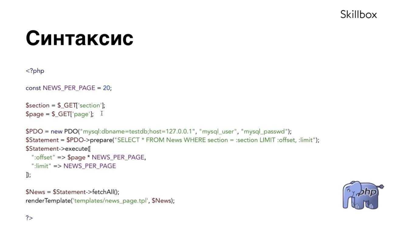 Пример синтаксиса на PHP — страница с демонстрацией новостей из базы данных