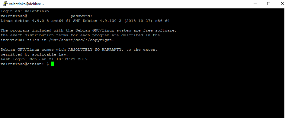 Во время установки был создан отдельный пользователь, под которым и будем подключатся к системе:
