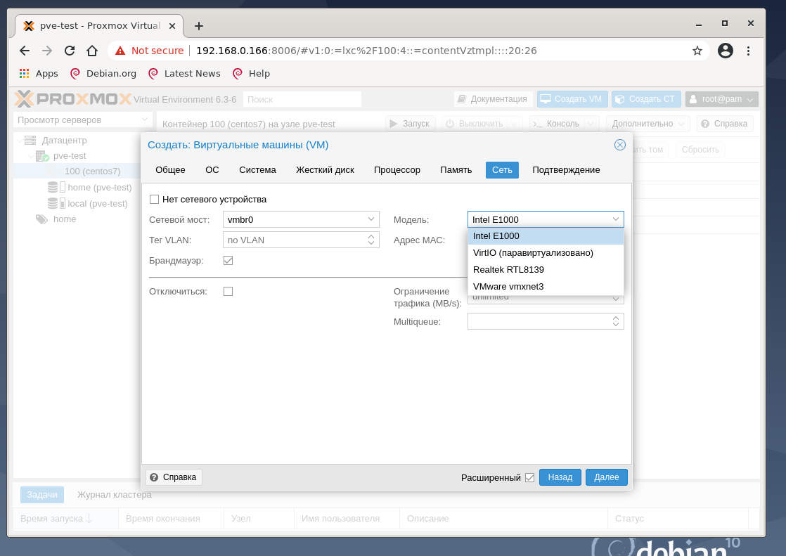 Итак, созданный нами ранее сетевой мост vmbr0 используется в виртуальных машинах Proxmox VE для создания виртуальных сетевых интерфейсов для них. Через vmbr0 интерфейс будет подключён к роутеру сети, к которому подключена сетевая карта, на которой работает vmbr0.