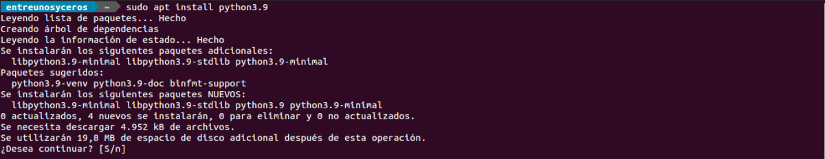 Если на экране мы видим сообщение, подобное показанному на предыдущем снимке экрана, Python 3.9 будет установлен в нашей Ubuntu, и мы можем начать его использовать.
