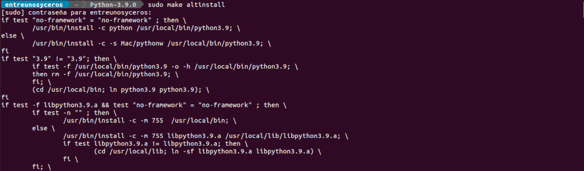 Когда предыдущая команда завершится, мы запустить процесс сборки Python 3.9: