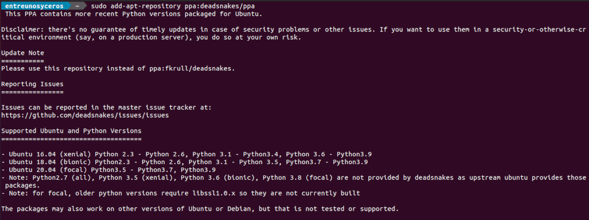 sudo add-apt-repository ppa:deadsnakes/ppa