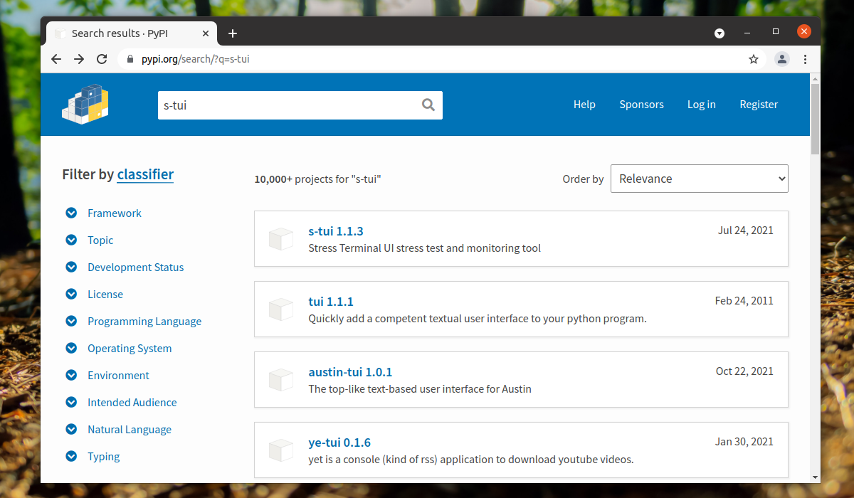 В результате поиска будут отображены все пакеты, в именах которых содержится слово, которое было введено в поисковую строку. Перейдите на страницу необходимого пакета и отобразится подробное описание о данном пакете – информация о пакете, пример использования, история изменений и т.д.