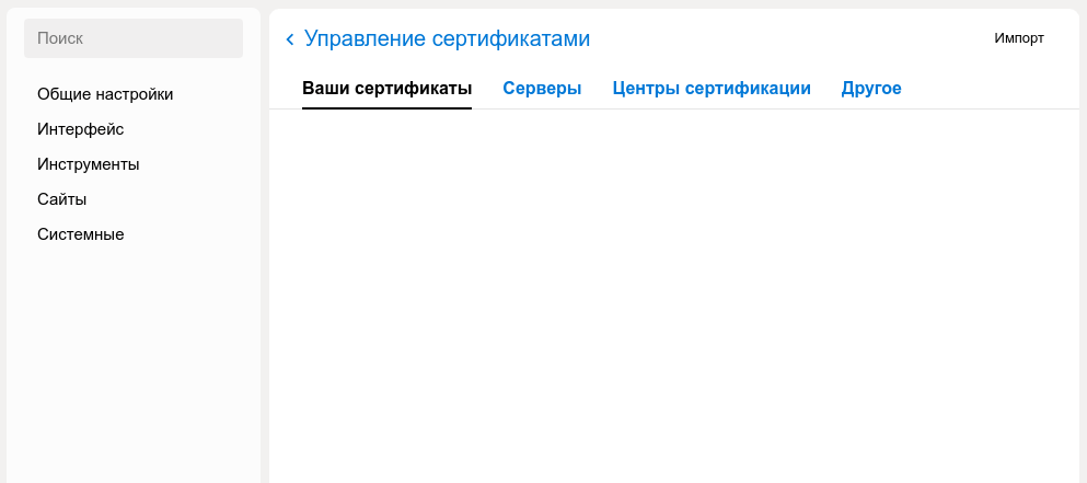 Настройка сертификатов в браузере