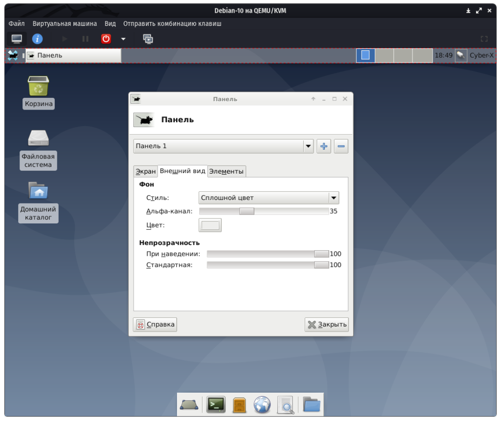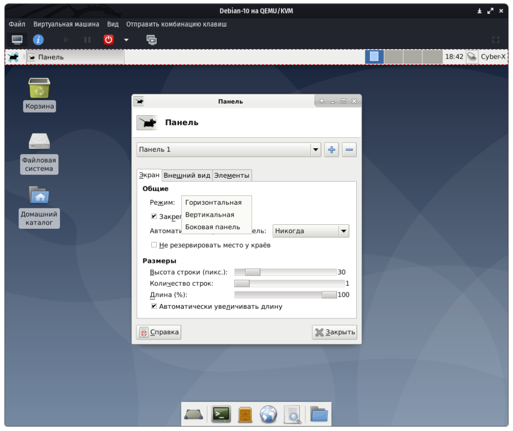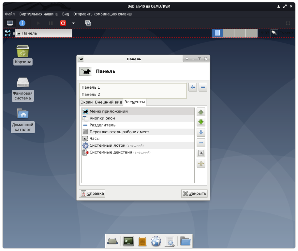 Настройки панелей в XFCE 4