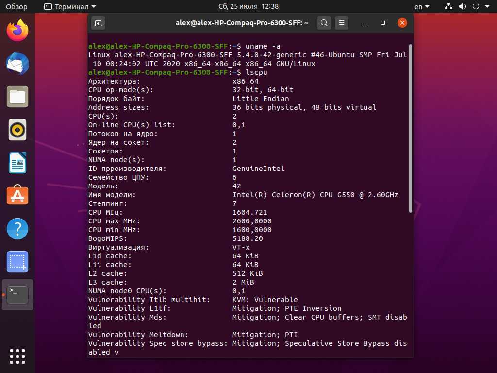 Предположим, нам нужно узнать полное название операционной системы и данные по процессору. Открываем терминал, вводим команды «uname — a» и «lscpu» и получаем результат — аналогичным образом можно управлять всеми процессами операционной системы Ubuntu.