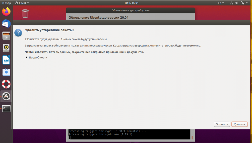 Затем система предложит очистить все ненужные пакеты, которые остались от старой установки: