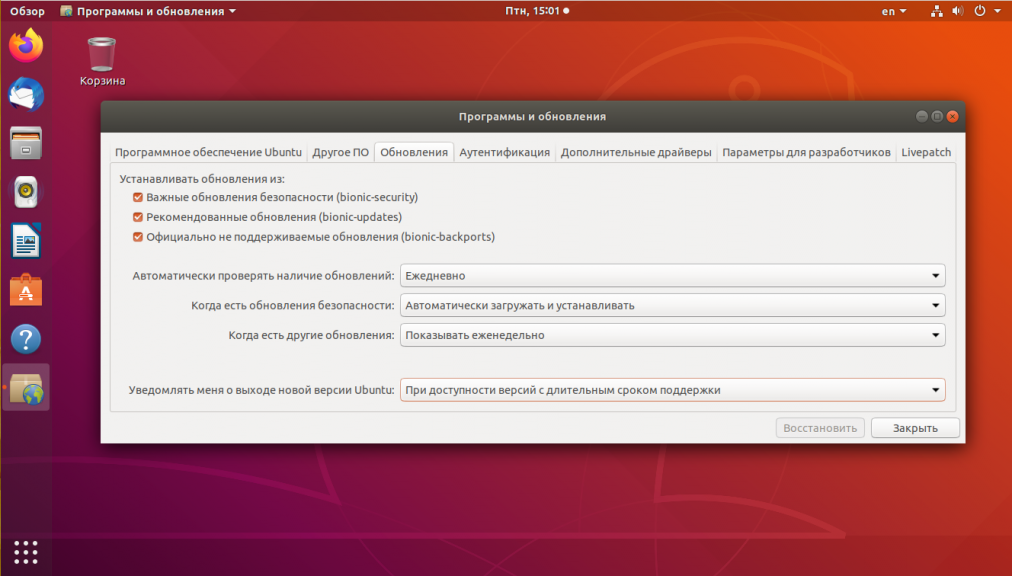 Чтобы обновиться именно до LTS, надо настроить источники обновлений. Для этого откройте утилиту Программы и обновления: