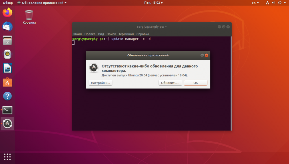 Запустите менеджер обновлений, выполнив команду update-manager в терминале: