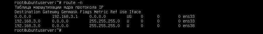 Правильно ли мы прописали наш шлюз по умолчанию можно посмотреть в таблице маршрутизации. Она выводится с помощью команды «route -n», Шлюз по умолчанию будет обозначен флагом UG.(Рис.13)