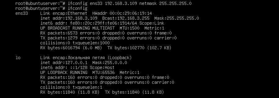 Далее смотрите вывод команды ifconfig, изменения должны должны быть применены.