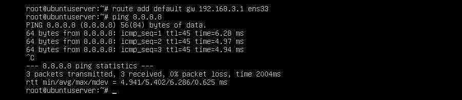 На этом временная настройка закончена, помните что после перезагрузки сервера или отдельно службы networking, все временные настройки исчезнут.
