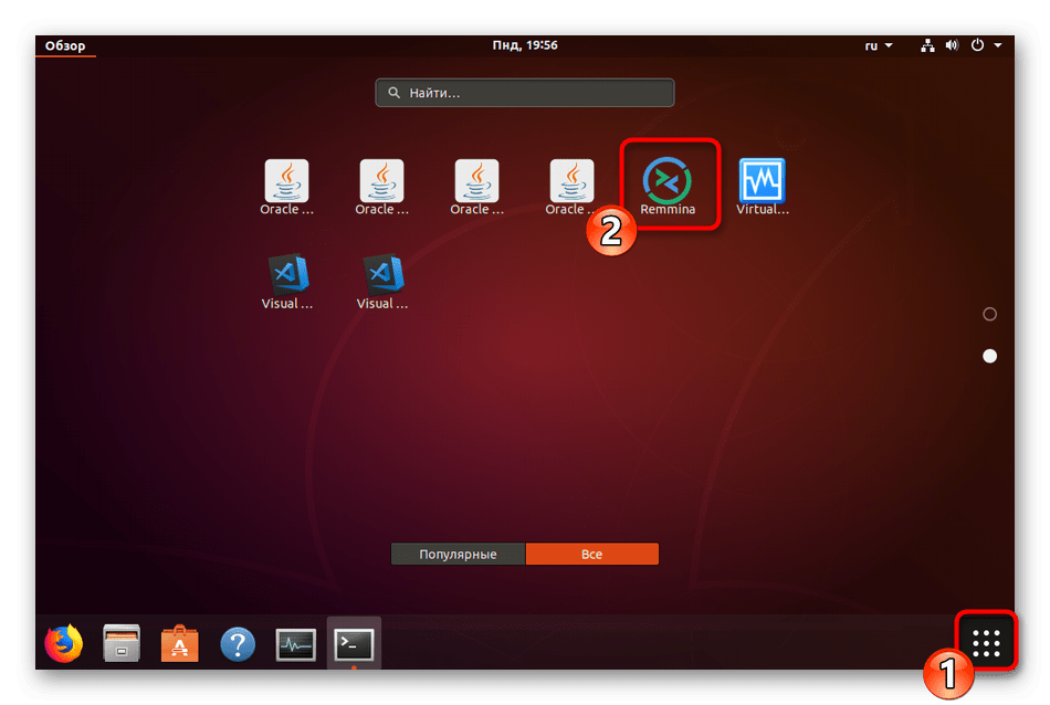 Запустить Remmina можно через меню, нажав на соответствующий значок.