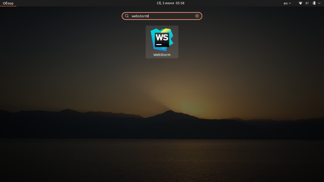 Запустить WebStorm можно через меню приложений. Если среда разработки WebStorm была установлена с помощью snap-пакета, её можно запустить в терминале командой: