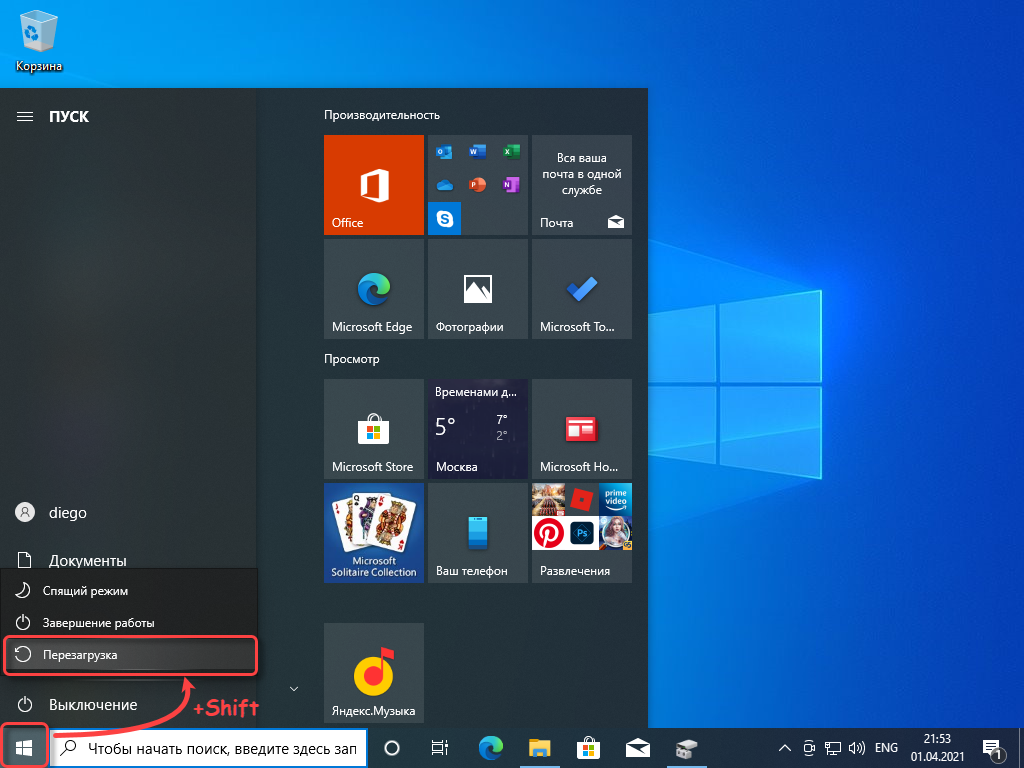 Эти действия переведут вас в Среду Восстановления Windows (Windows Recovery Environment).