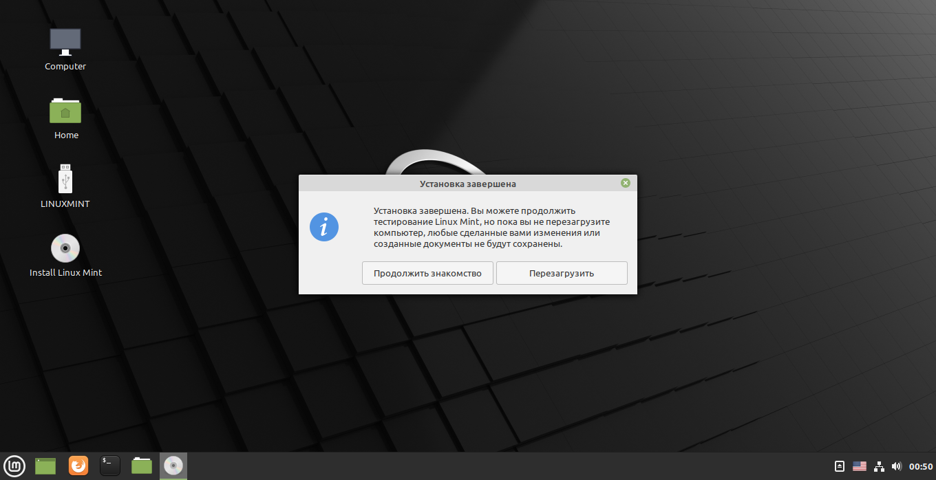 Теперь ваш компьютер произведет загрузку Linux с подготовленного USB-диска.