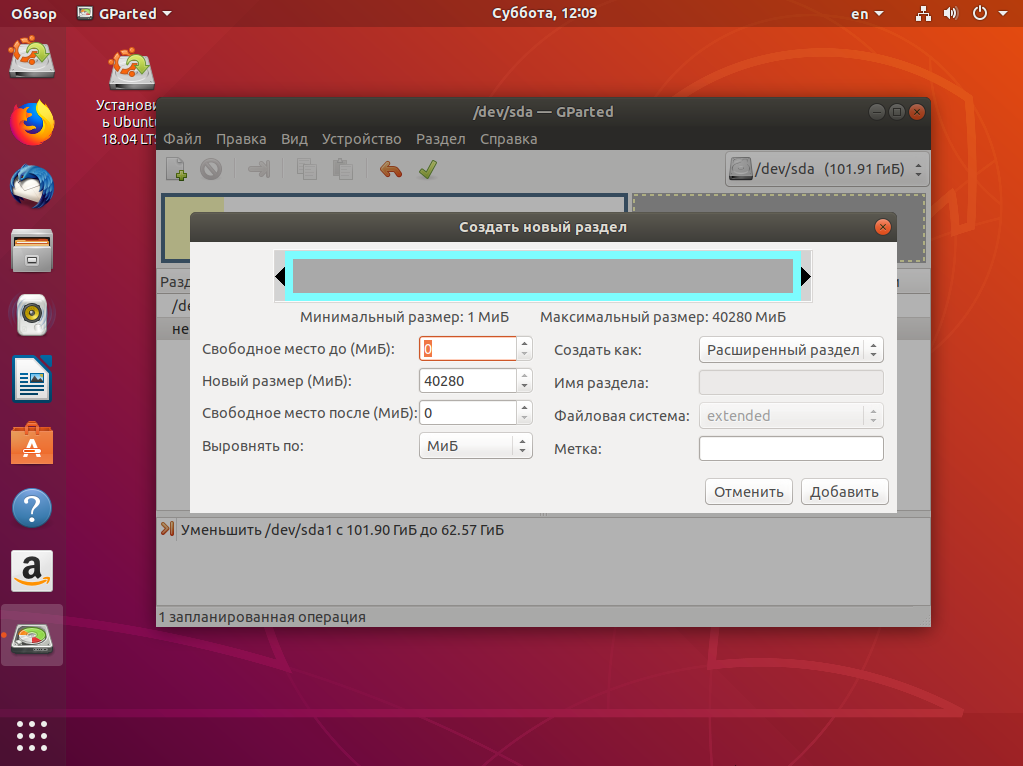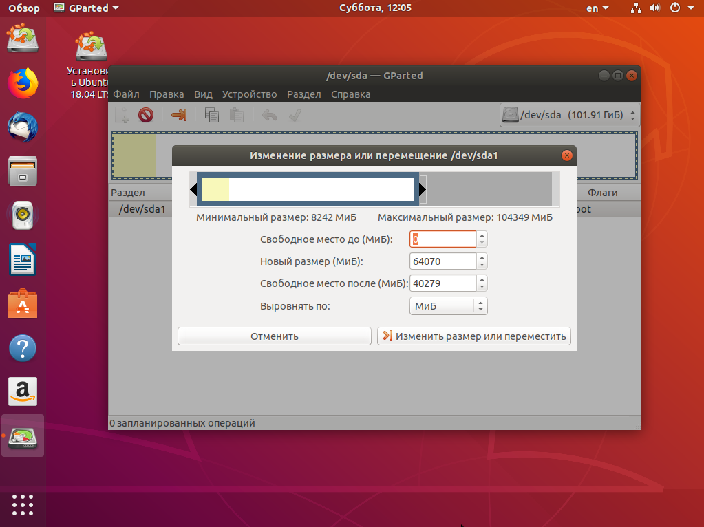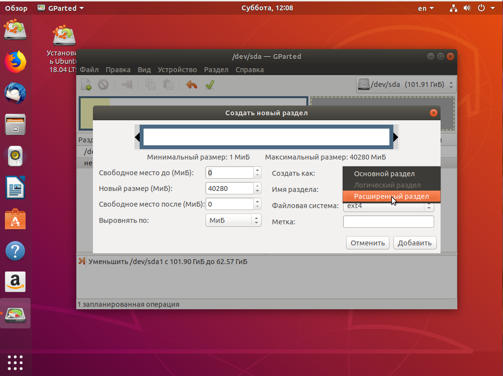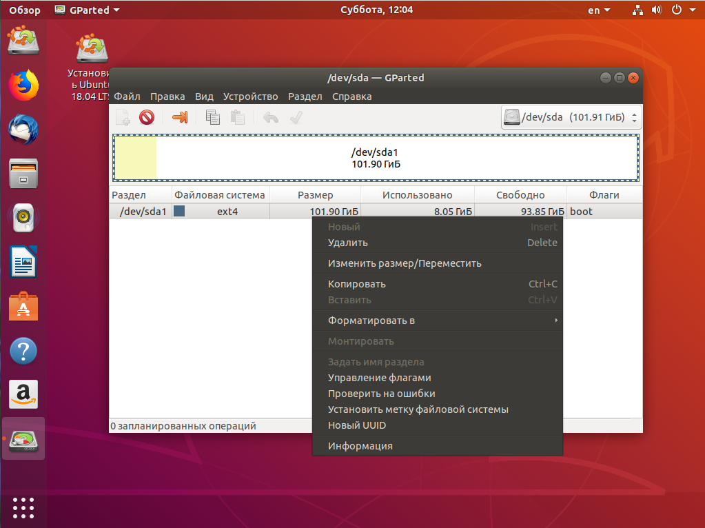 Загружаем наш диск, например Ubuntu, и запускаем Gparted: