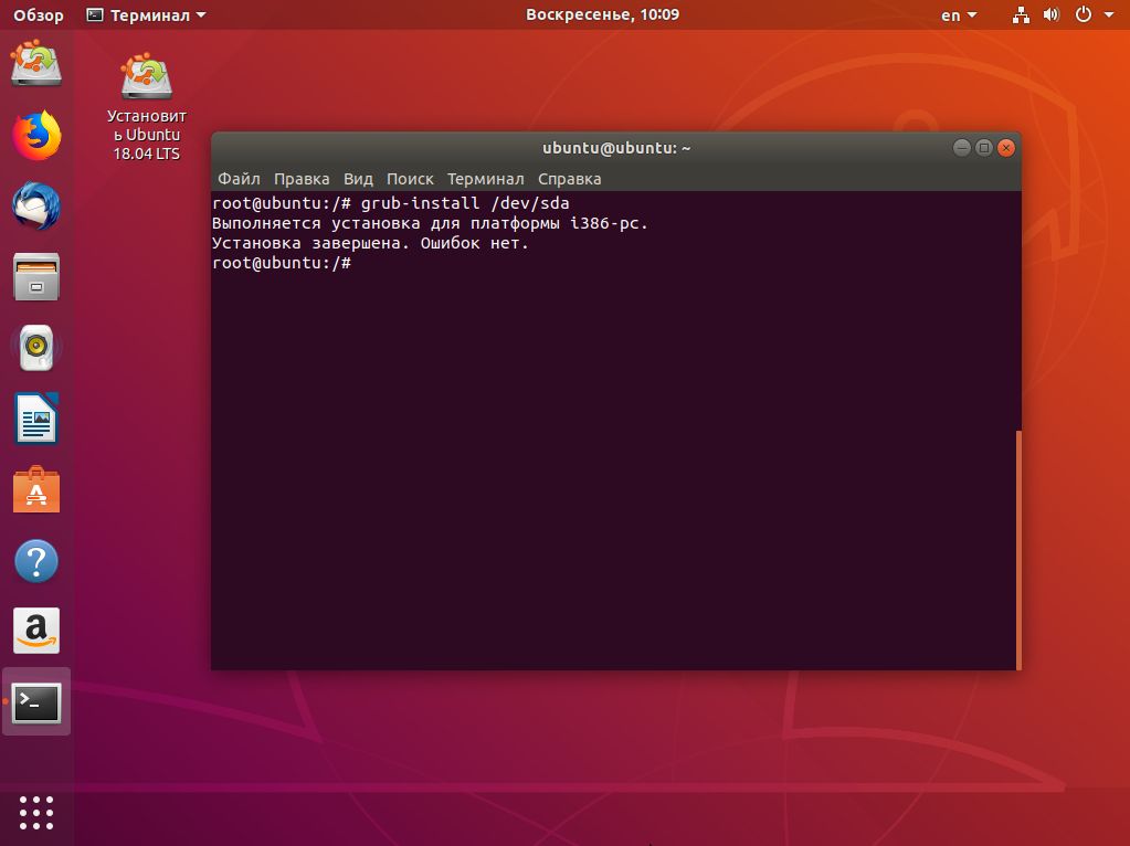 Далее мы можем заняться восстановлением загрузчика. Сначала установим его на диск: