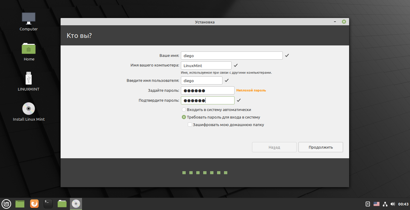 Шаг №3: Установка Linux с загрузочного USB-диска