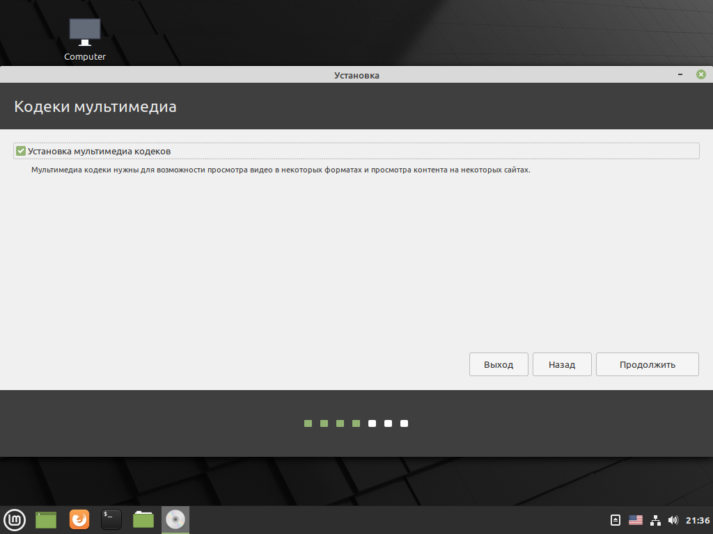 #3 — галочка возле «Установка мультимедиа кодеков» и «Продолжить»