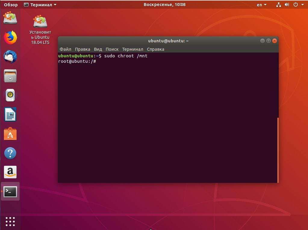 И переходим в окружение нашего установленного ранее Linux с помощью команды chroot: