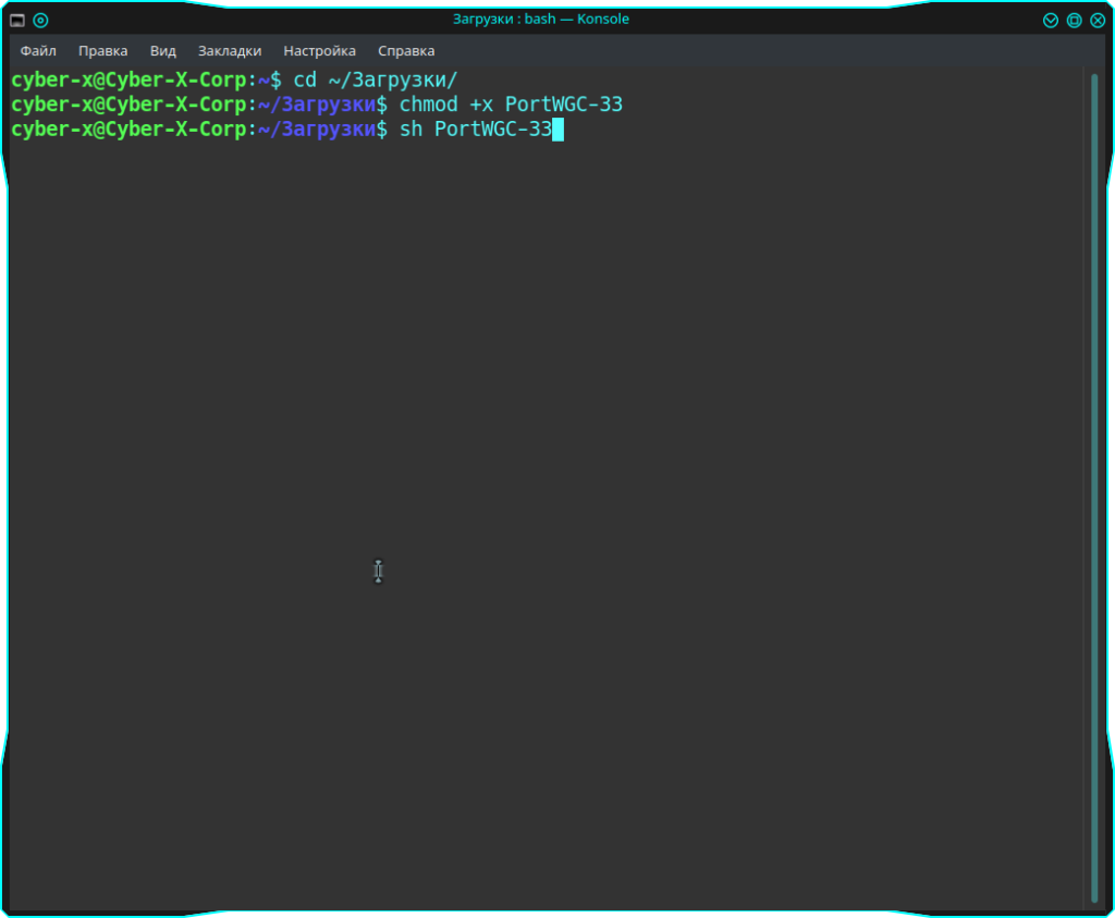 sh PortWoT-. (вместо “sh” можете использовать “./”, например “./PortWoT-. “)
