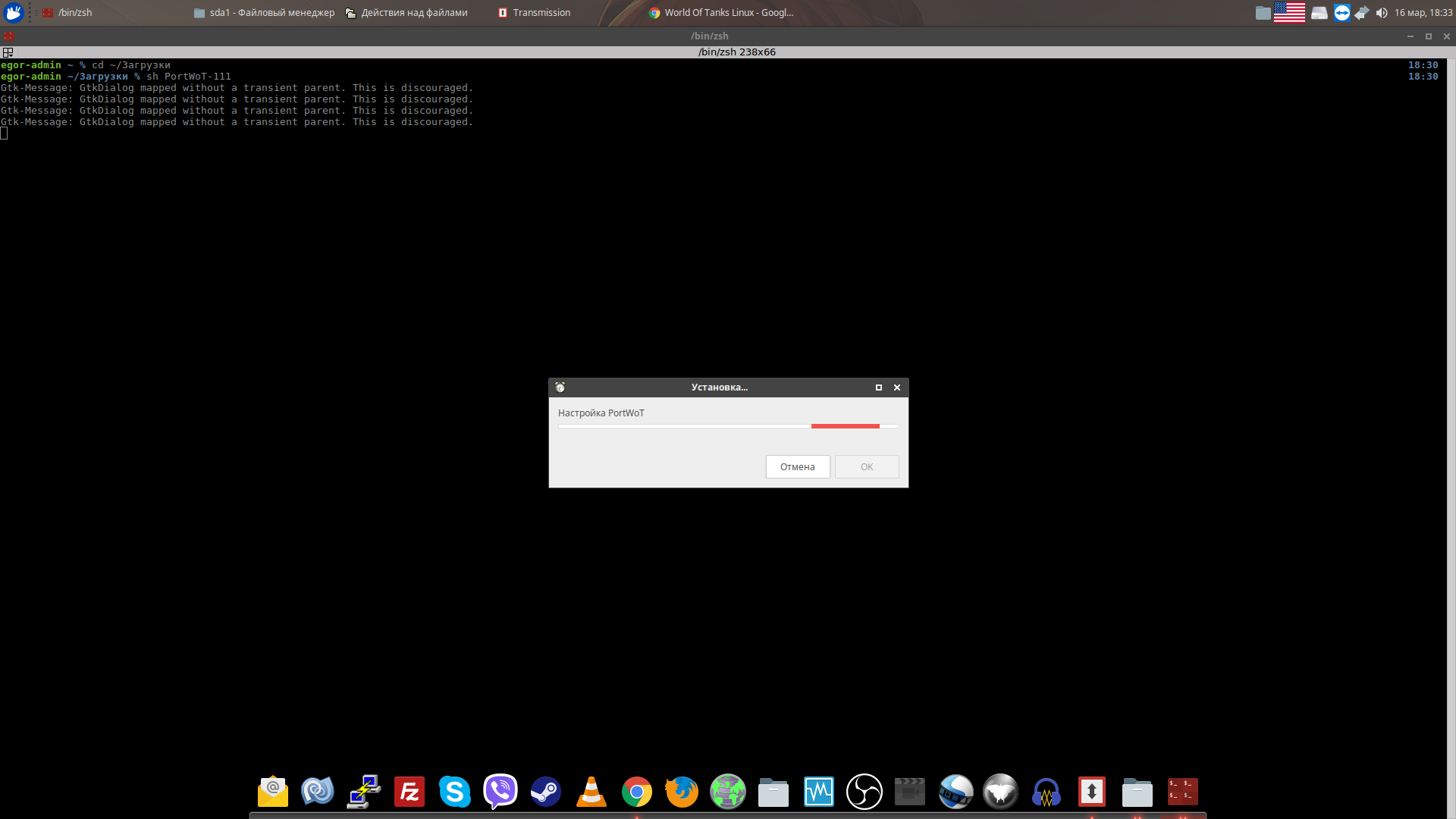 Добрый день всем, кто оказался на данном сайте. Сегодня речь пойдет про установку многим известной игры World of Tanks на Linux. Игра вот уже не первый год является одной из самых востребовательных в игрой индустрии. Но, вернемся к установке самой игры. Для ее установки воспользуемся проектом “portwine”. Описывать что это за проект я не стану. Всю информацию вы найдете на официальном сайте данного проекта. Для установки игры World of Tanks сначала потребуется установить Wargaming. Wargaming и собственно игру я буду устанавливать на Ubuntu 18.04, при возникновении проблем, вы можете связаться с автором проекта portwine. А так же советую вступить в группу вк, и подписаться на канал на youtube. На этих ресурсах вы сможете задать автору проекта все интересующие вас вопросы. Первым делом установим необходимые зависимости.