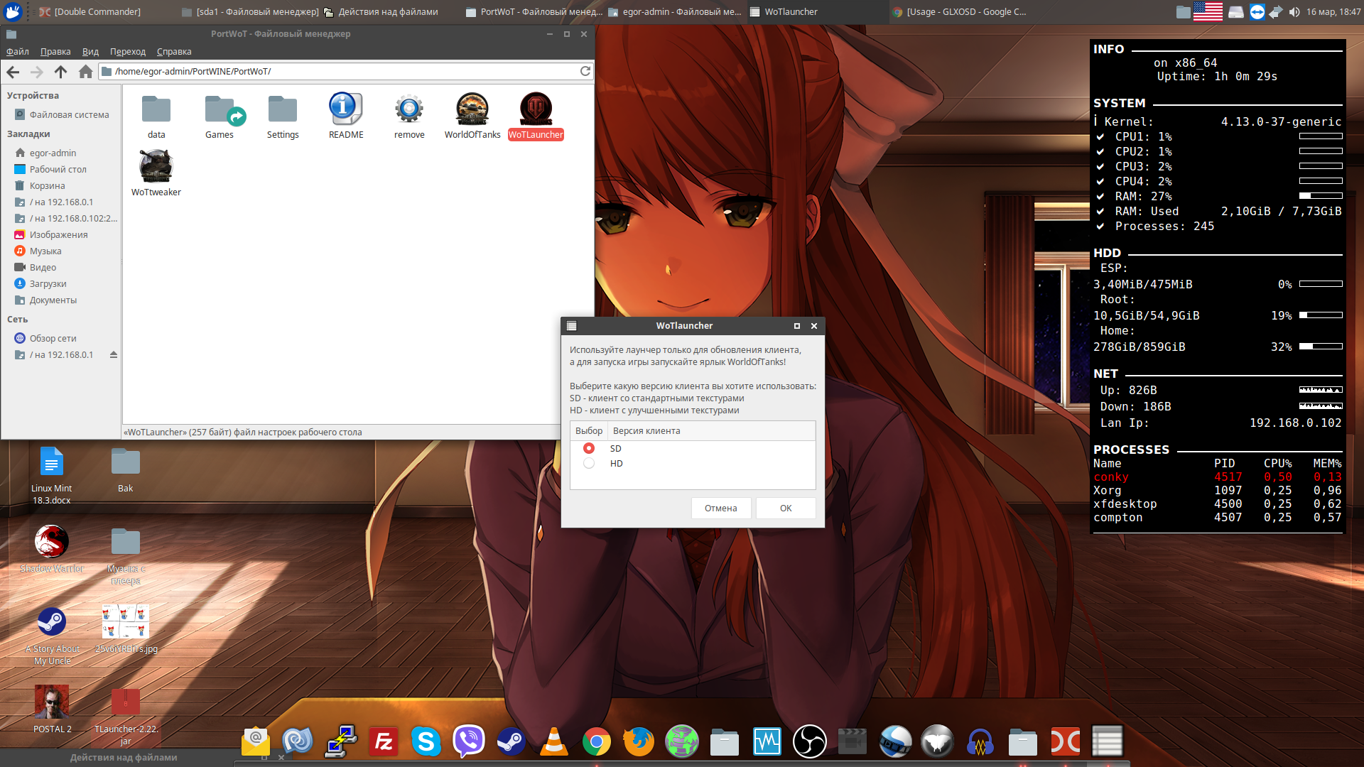 Решил (не являясь танкистом) ради интереса запустить актуальную версию WoT используя обычный Wine в Linux Mint 17.3 Оказалось, что запустить пресловутые “танки” оказалось довольно легко