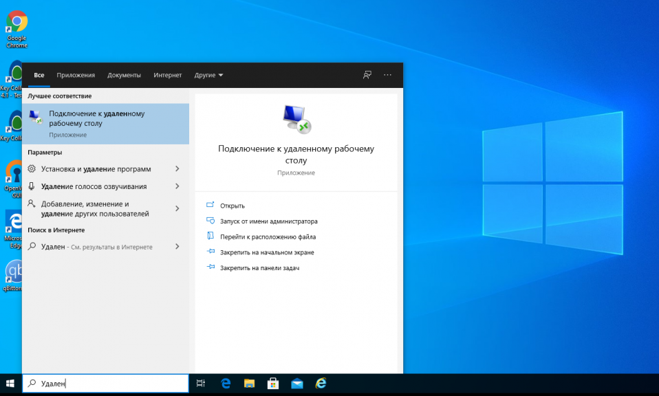 В Windows откройте поиск и найдите там подключение к удалённому рабочему столу: