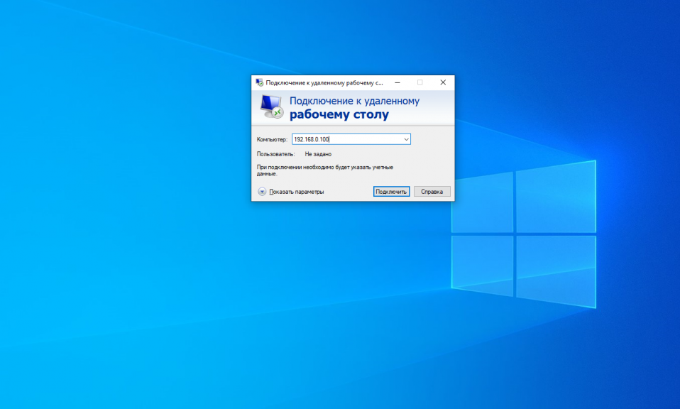 Введите IP адрес сервера, на котором запущен RDP клиент и к которому вы хотите подключится: