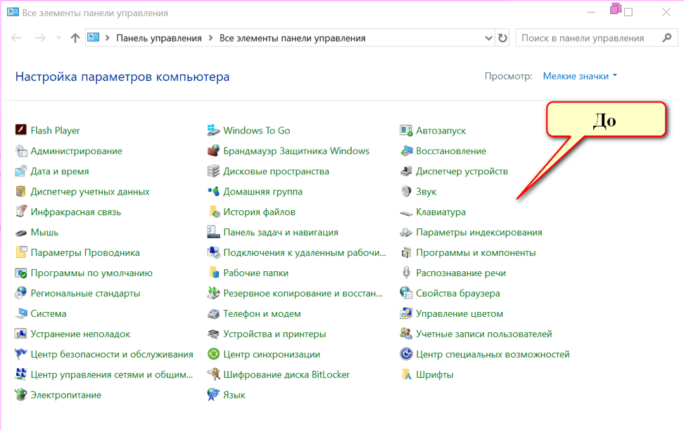 Рис.11 Список элементов панели управления до изменения параметра локальной групповой политики