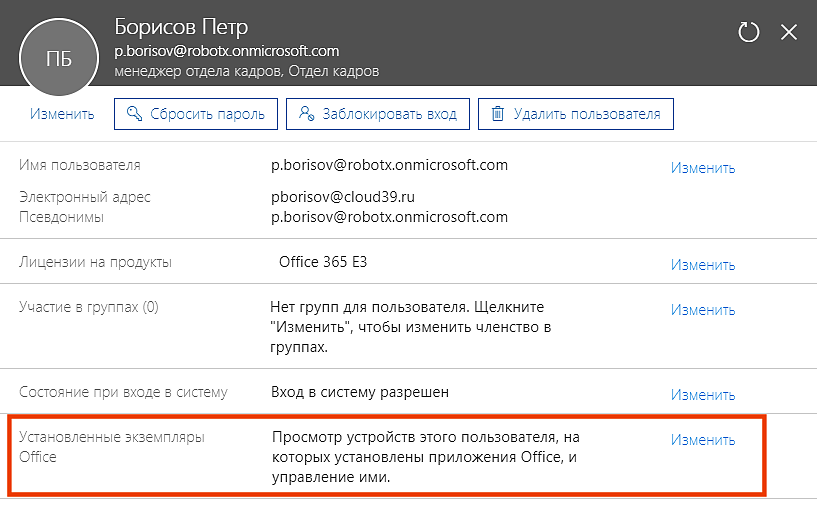 Если доступные установки приложений Office для это пользователя исчерпаны, то необходимо нажать на «отключить» и вы освободите одну из доступных 5-ти установок. После этого можно продолжить активацию пакета Office.