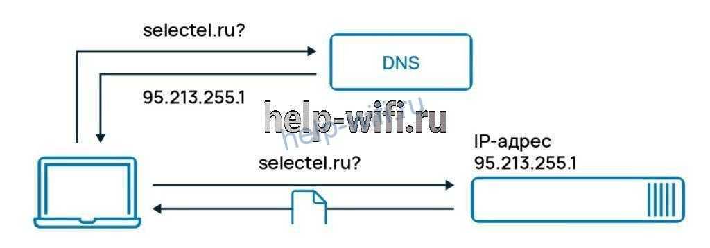 То же самое происходит, когда вы набираете адрес сайта в браузере. Так как компьютер не знает реального IP-адреса, он отсылает запрос на DNS-сервер, на котором храниться база адресов. После получения ответа браузер загружает данные с нужного сайта и показывает их пользователю.