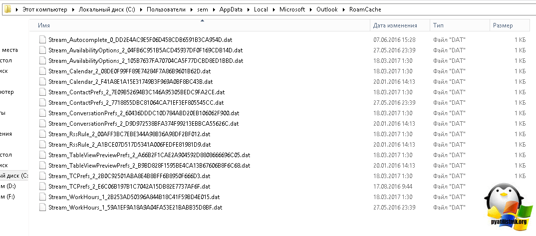 C:\Users\имя пользователя\AppData\Local\Microsoft\Outlook\RoamCache
