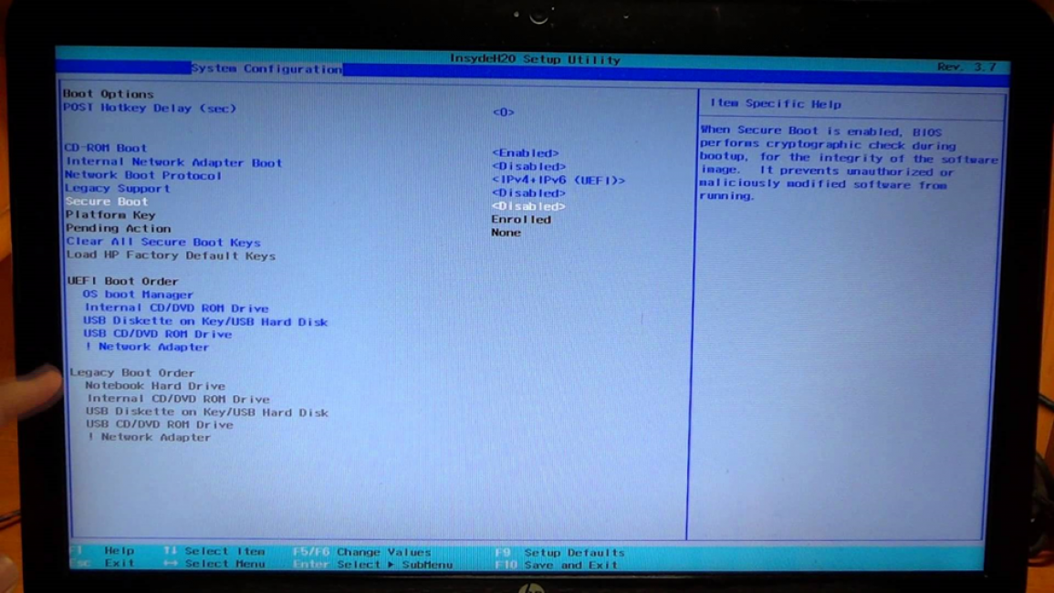 Отключение Secure Boot на ноутбуках HP Pavilion и других моделях HP