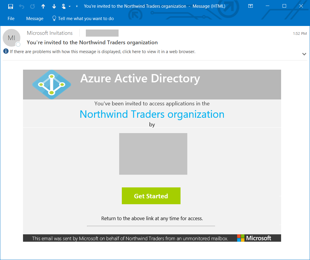 Чтобы принять приглашение, пользователю необходимо выбрать Начало работы ссылку.