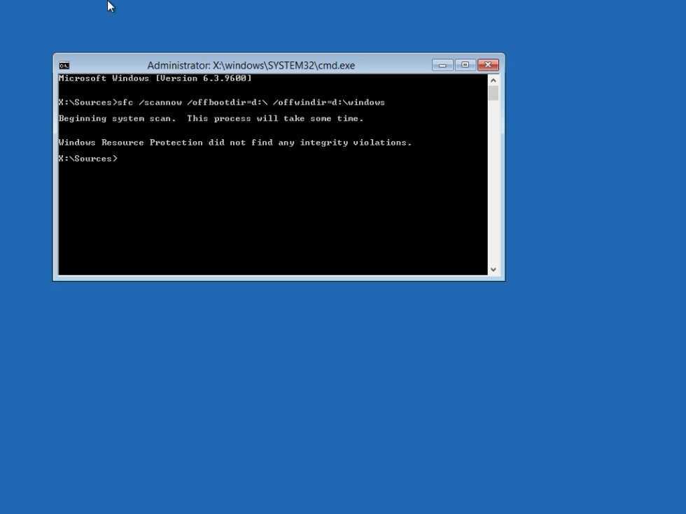 После этого желательно также проверить целостность системных файлов с помощью утилиты sfc. Для использования утилиты sfc в офлайн режиме, нужно указать путь к системному диску и папке Windows. Предположим, в вашем случае это диск D:, команда проверки системных файлов будет выглядеть так: