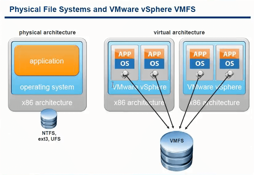 Ниже представлена картинка как выглядит Physical архитектура и виртуализация vmware. В физической архитектуре, ос функцианирует по верх железного оборудования. Рассматривая виртуализацию vmware, тут уже все немного иначе. Отличие в прослойке гипервизора ESXI (VMware vSphare). VMware vSphare Позволяет запускать экземпляры виртуальных машин, эмулируя для них оборудование. В такой реализации будет другая схема общения с ресурсами. Об этом мы поговорим в будущем.