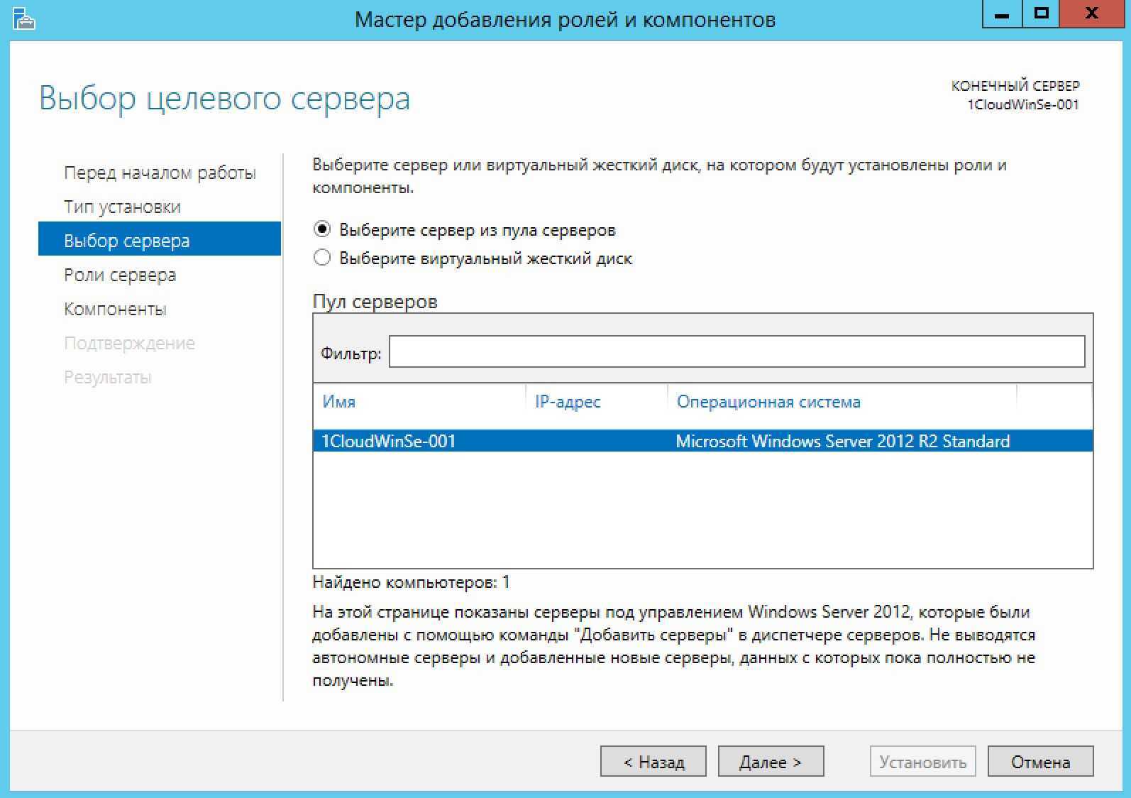 Затем выберите нужный сервер из пула. Нажмите Далее.