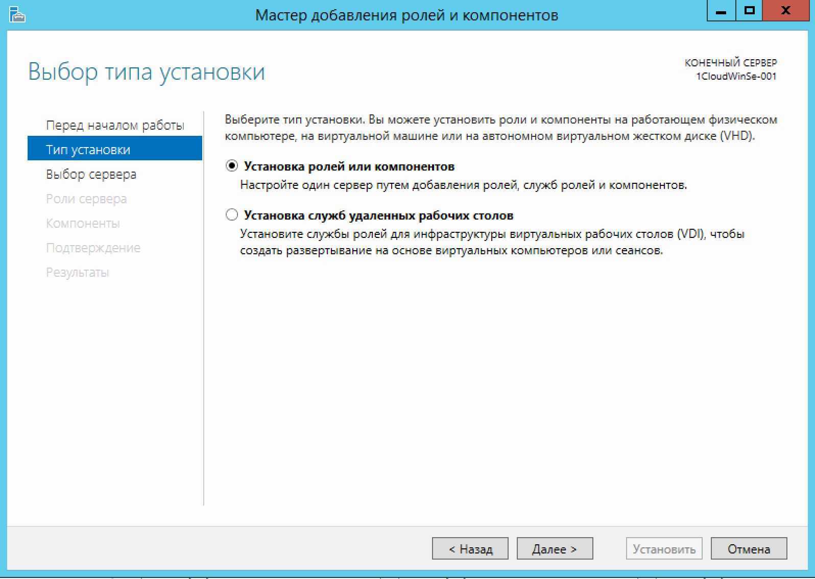 В открывшемся выберите тип установки Установка ролей или компонентов.