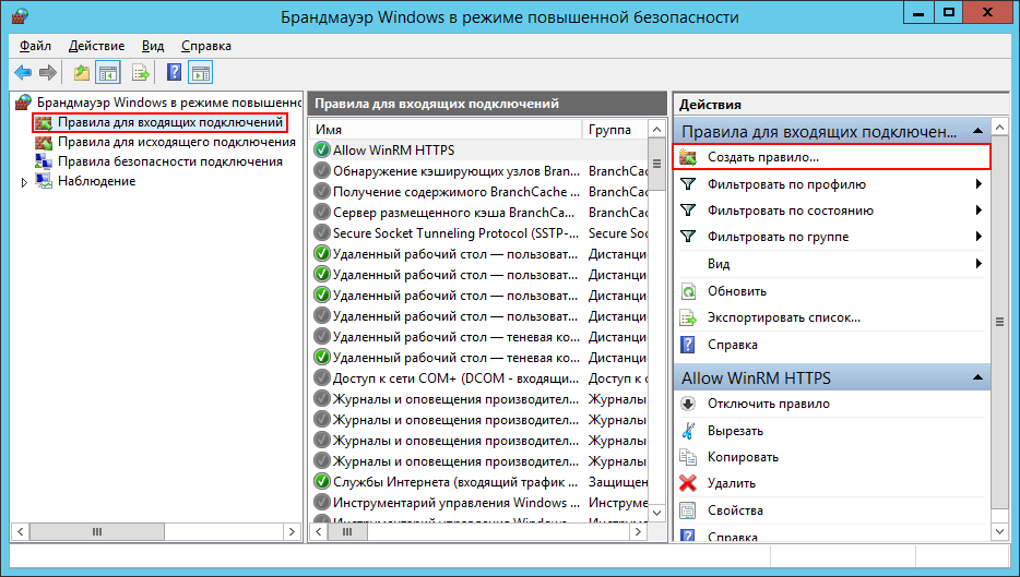 Затем в настройках Windows Firewall with Advanced Security проверьте, что включены следующие правила: