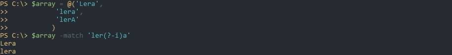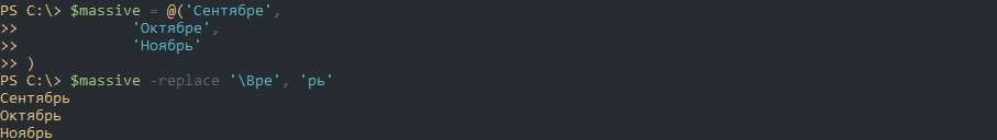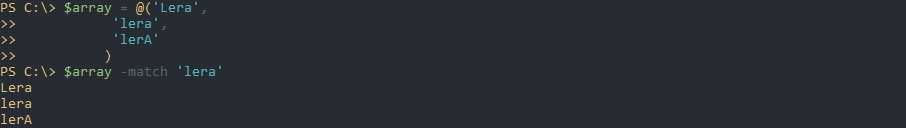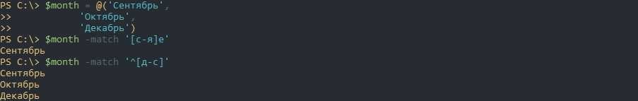 Ниже мы ищем значения, где есть буквы от ‘с’ до ‘я’, после которых есть буква ‘е’. Во втором примере мы ищем элементы массива, которые начинаются с букв ‘д’ до ‘с’: