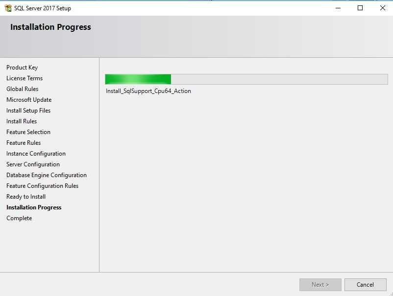 Install Rules так же пройдет автоматически, если установщик не обнаружит проблем, которые необходимо решить перед установкой MSSQL (например, перезагрузить компьютер или несовместимость вашей версии Windows с версией SQL Server).