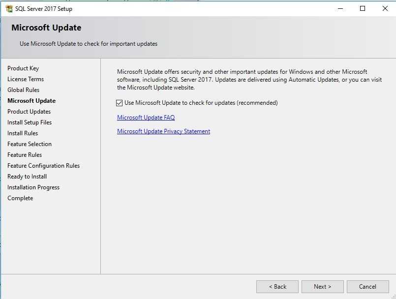 Параметры обновлений SQL Server при установке